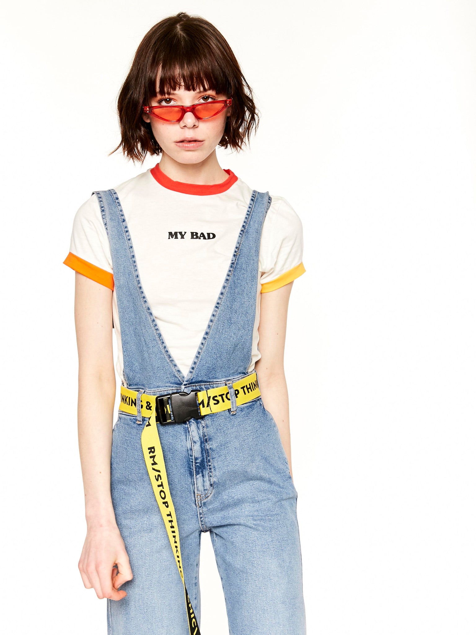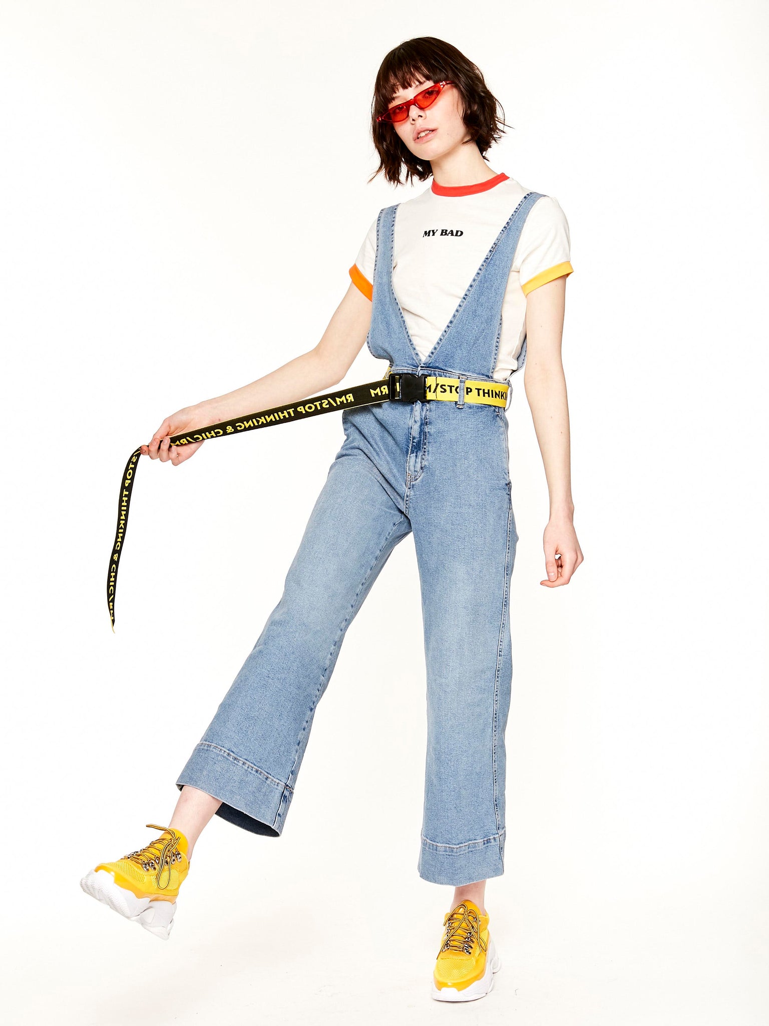 Cinturon Amarillo Y Negro, que dice "STOP THINKING & CHIC" , polifuncional. No tienen talle y mucho menos edad.