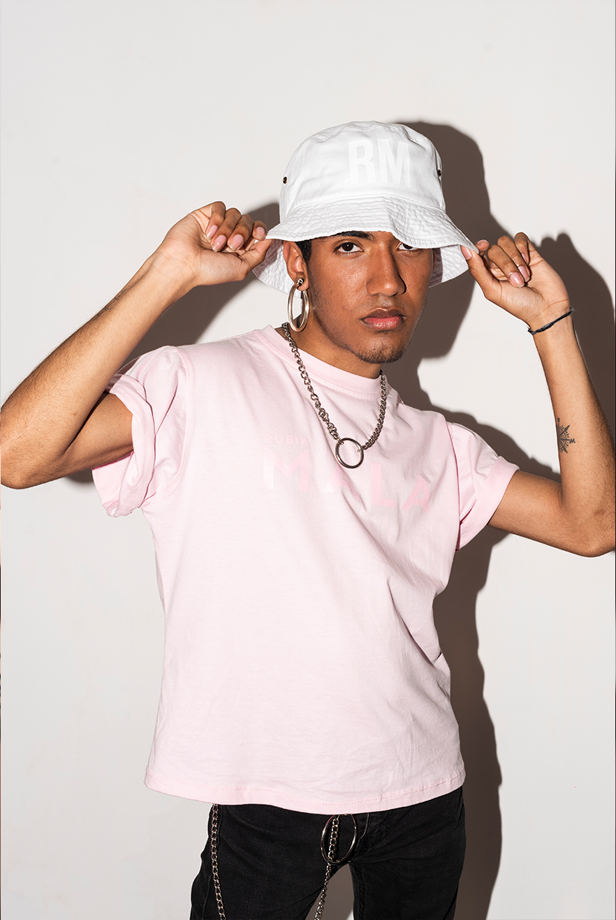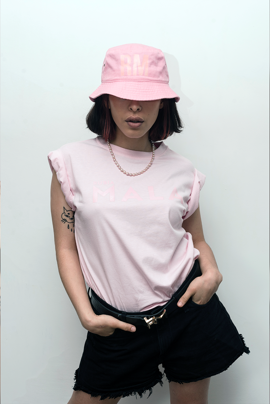 Remera 100% algodón hecha en Uruguay con inscripción "rubia MALA" en el frente.
